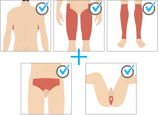 ”体毛による蒸れ”の不快感を抑え、かゆみや炎症などの肌トラブルを回避することが可能です。スポーツを理由に剃毛されている方は、カミソリ負けなど剃毛による肌への負担も解消されます。