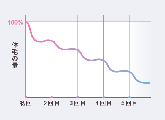 4回目終了後、毛質が細くなったり毛量が減って、自己処理が楽になってくることを実感する方が増えます。