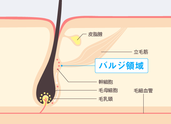 | 破壊する部分 | バルジ領域(毛の幹細胞を作る場所) |