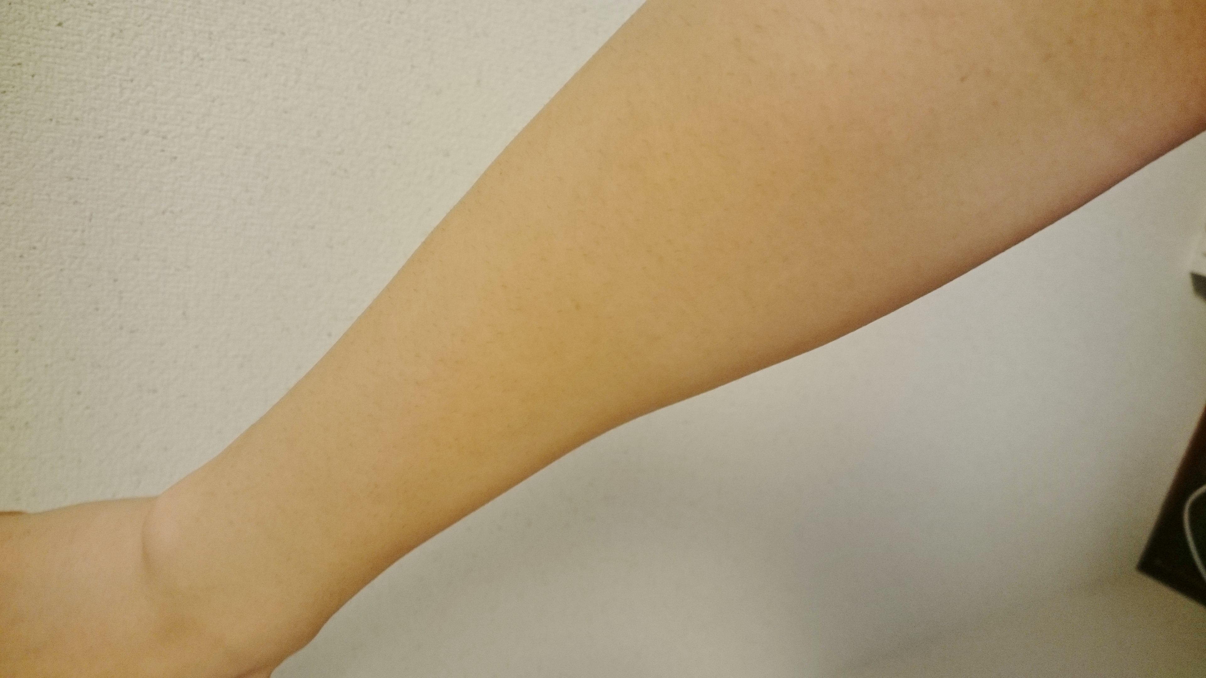 自分の腕は脚と比べやや日焼けしているにもかかわらず効果が見られましたので下半身も効果も期待しております(下半身・ビキニライン3回目)