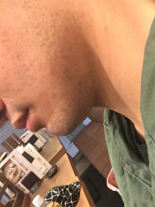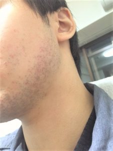 写真は3日目 左頬 まず、1回目の施術後の経過ですが、3週目から目に見えて抜けてきた、薄くなったな、と実感がでてくるほどになりました。 ひげ剃りもいつもなら朝に剃っても夕方には伸びて